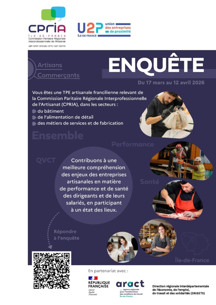 Pour mieux appréhender ces enjeux, la CPRIA Île-de-France, en partenariat avec l’Aract et la DRIEETS, a lancé une enquête auprès des artisans employeurs. Ouverte jusqu’au 12 avril, cette consultation vise à recueillir des retours concrets sur le quotidien des entreprises, afin d’identifier des solutions adaptées et de renforcer le dialogue social au sein des TPE artisanales.